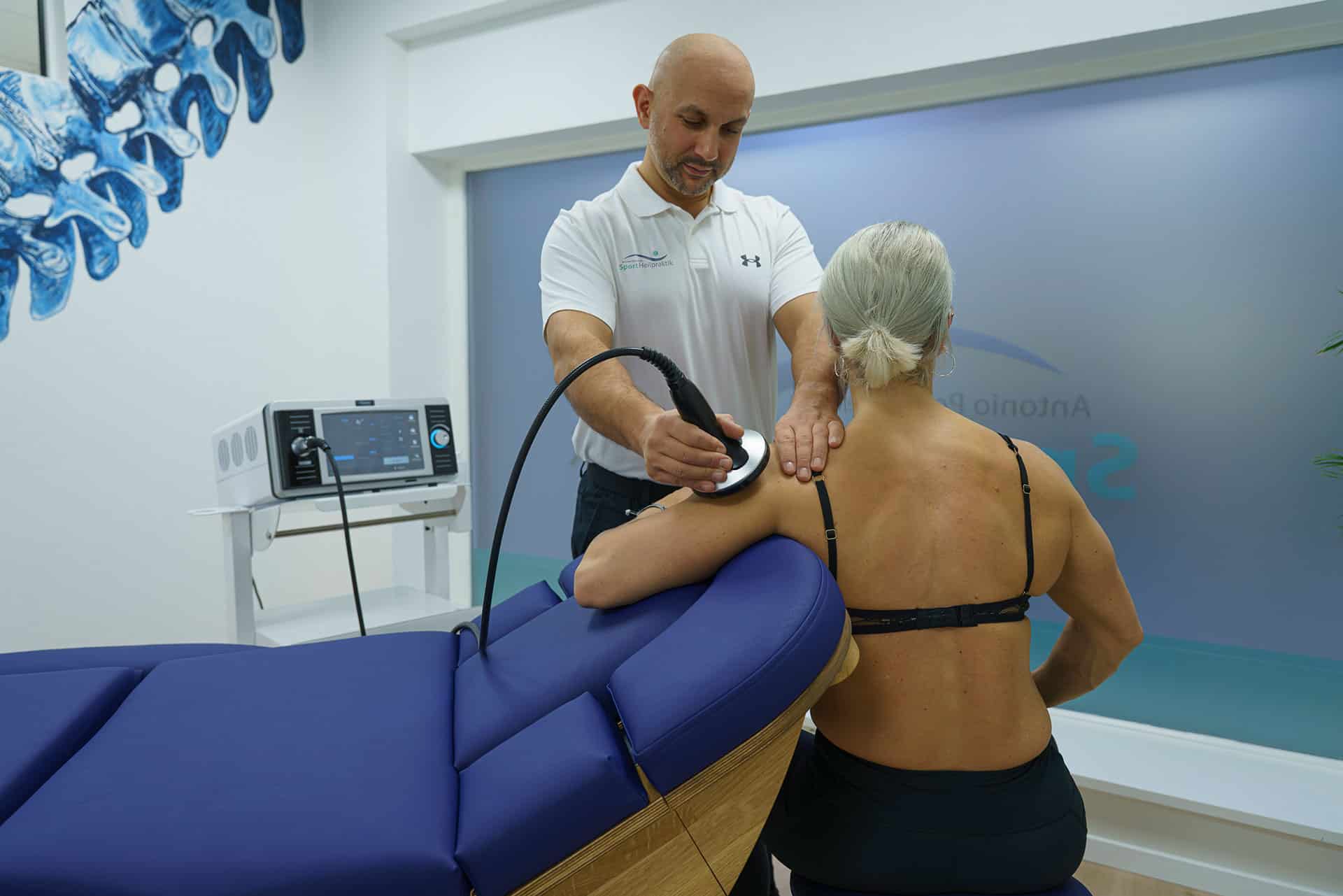 Der Therapieerfolg wird angesteuert durch die Chiropraktik & Manuelle Therapie, sowie technisch unterstützend durch Stoßwellen- und Induktionstherapie (Magnetfeldtherapie).